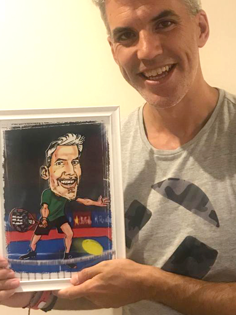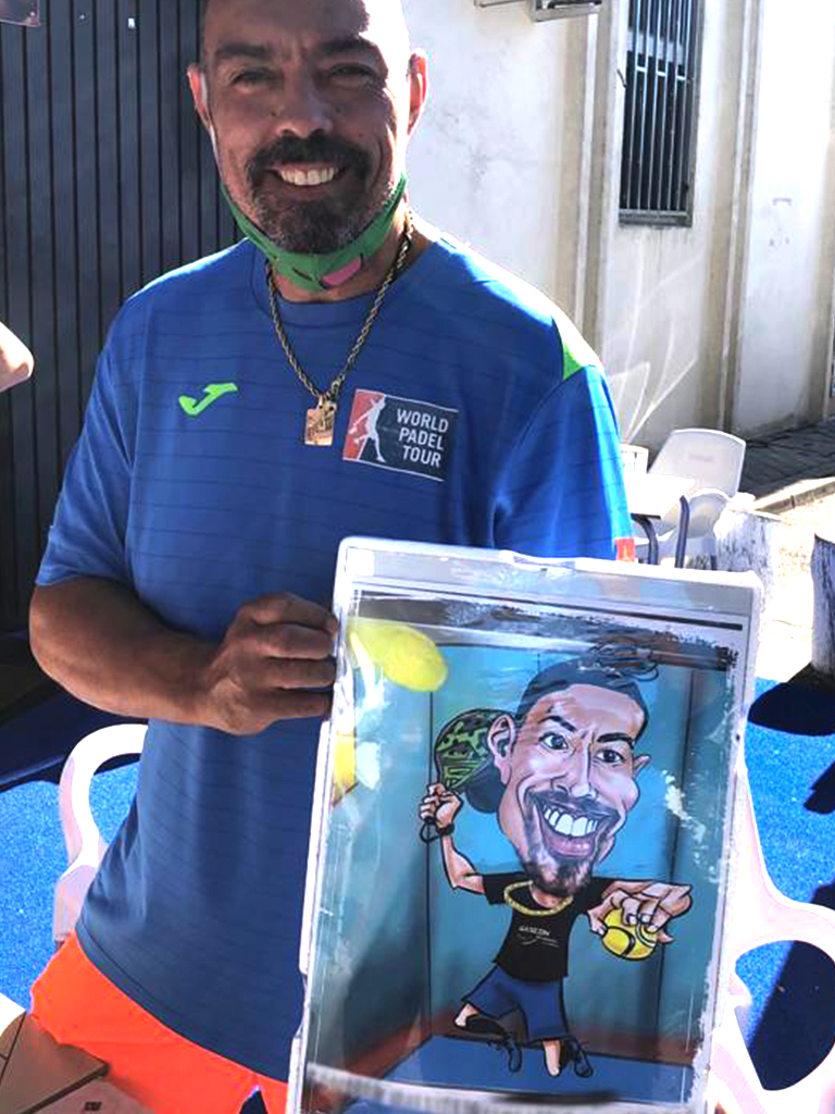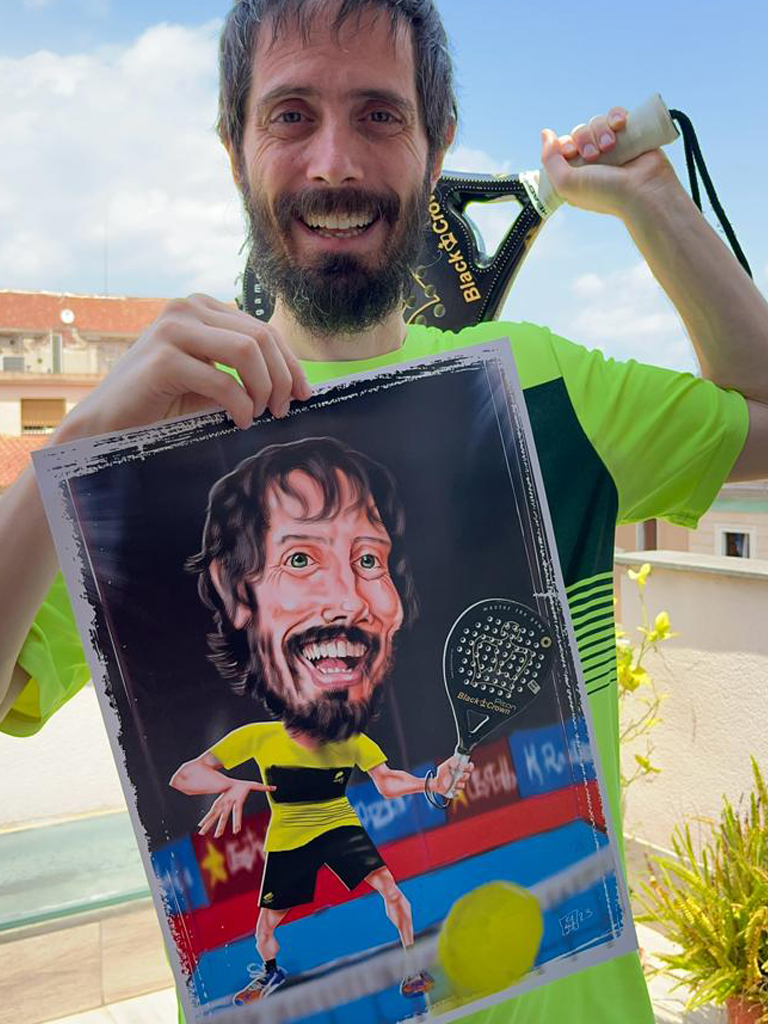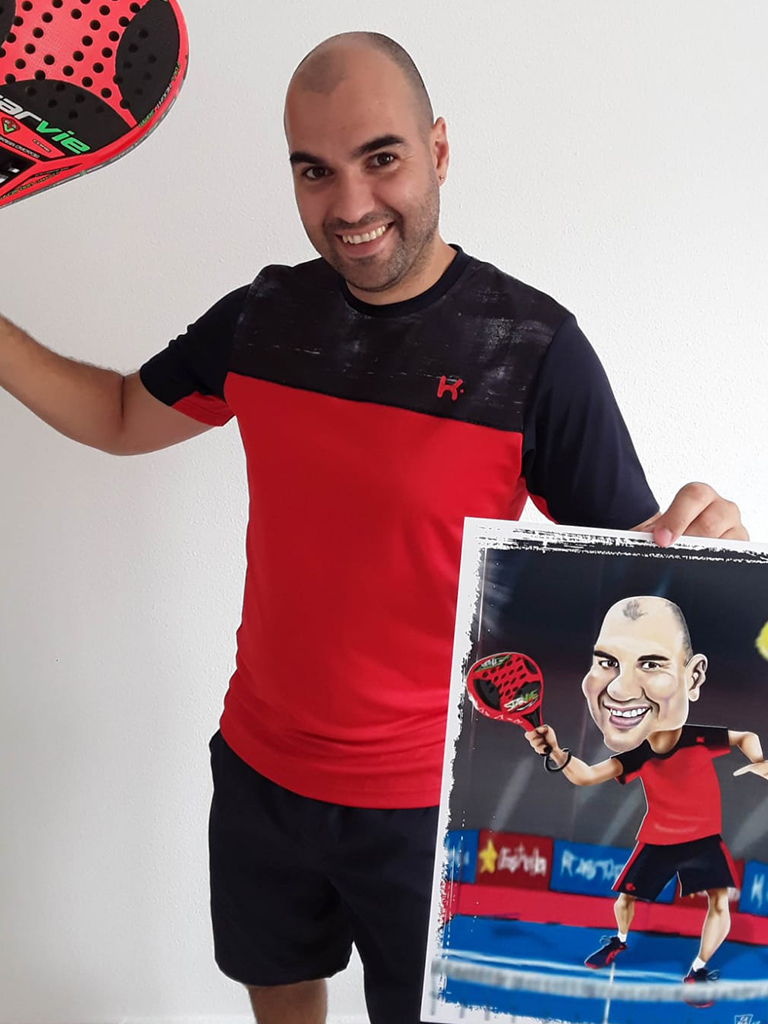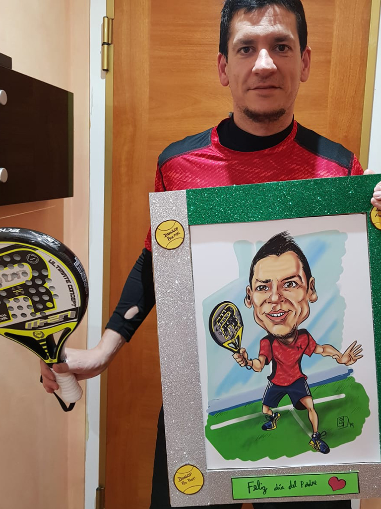 Caricatura con el modelo de pala que quieras. La que te de suerte en los partidos.