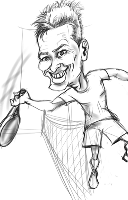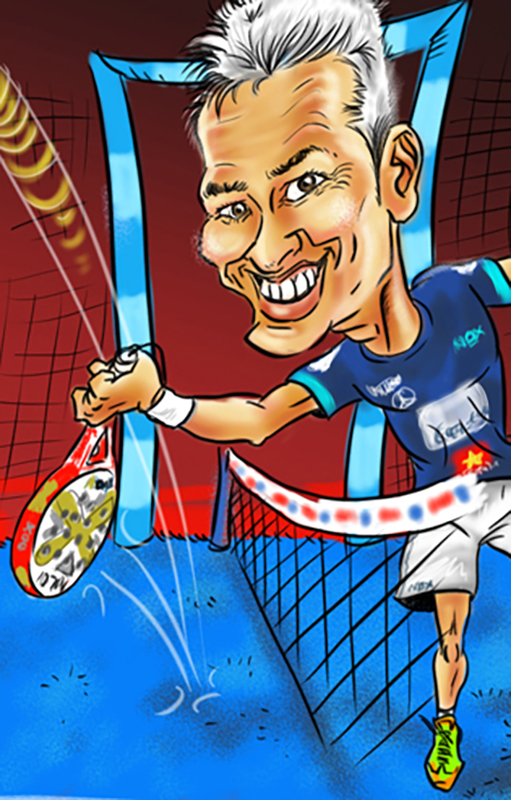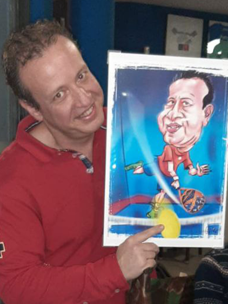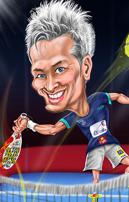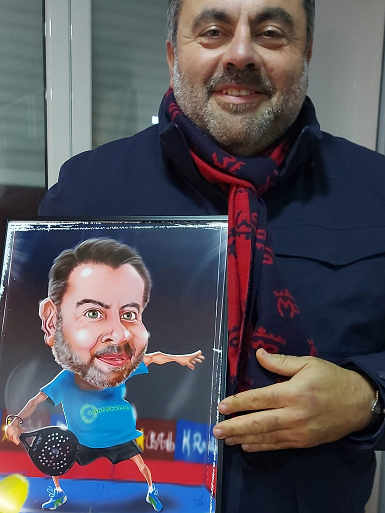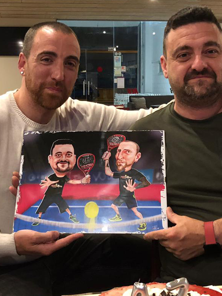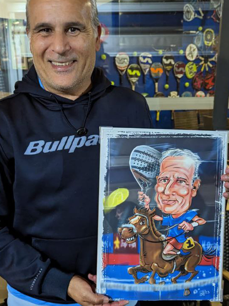 Caricatura con el modelo de pala que quieras. La que te de suerte en los partidos.
